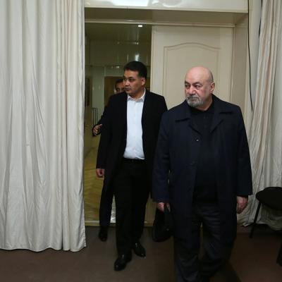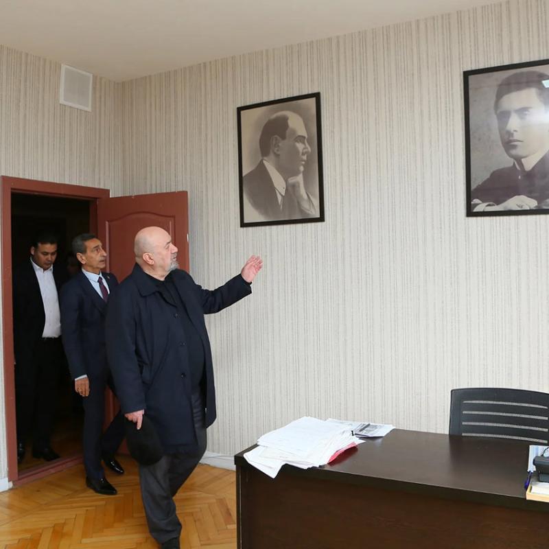 Hacı İsmayılov qonaqları İttifaqın binası ilə, burada fəaliyyət göstərən laboratoriyalarla tanış edib. Qonaqlar kiçik səhnədə gənc aktyorların məşq prosesini izləyiblər.